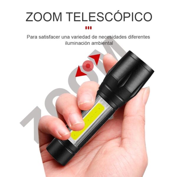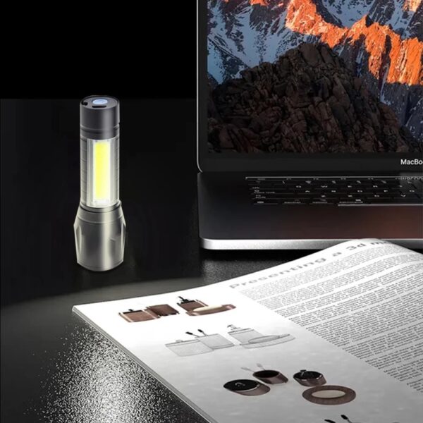 🔦 3 modos y zoomable 🔦 La linterna tiene 3 modos, XPE, COB y estroboscópica. Esta linterna súper brillante se puede utilizar para acercar un objeto enfocado o acercar para barrer un área grande tirando de la cabeza de la linterna. El proyector se utiliza para iluminar un área grande. El modo spotlight puede proyectar una luz fuerte de hasta 200 metros, lo que es una herramienta ideal para el trabajo, actividades al aire libre, camping, ciclismo, senderismo, etc.