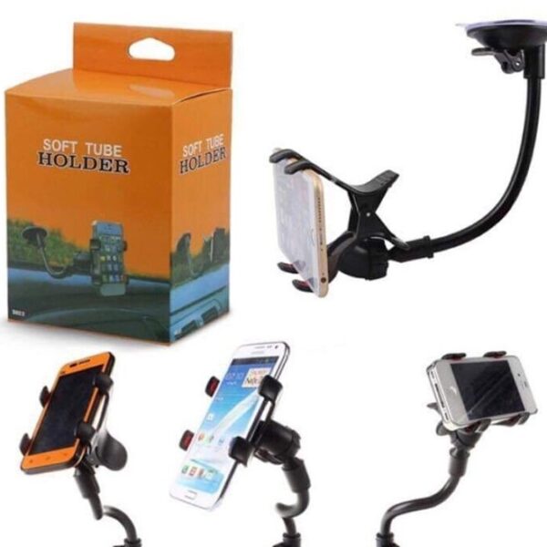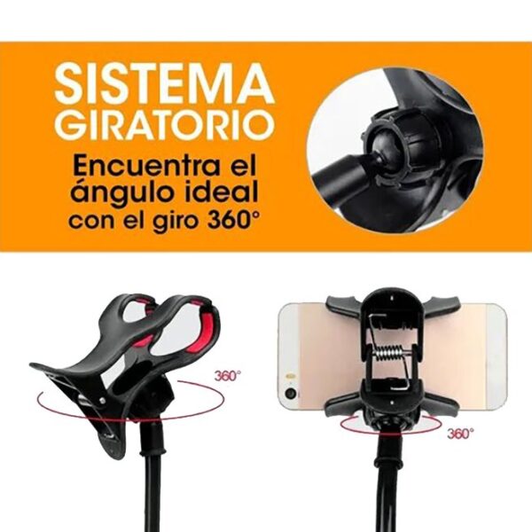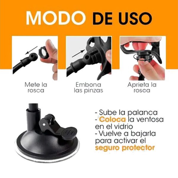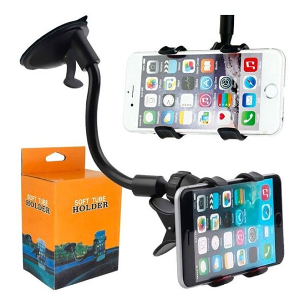 Soporte brazo para auto celular con ventosa. Coloca de manera sencilla el celular en el brazo soporte para tener el dispositivo con acceso fácil durante una parada o para visualizar el GPS, mapas y más. Con su excelente precisión detiene el celular sin riesgo de caerse. Es para cualquier celular Android o IPhone, celulares de hasta 6,5″. Rotación 360, gira 360 grados para ajustarse a la posición exacta que se desee, tanto horizontal como vertical. Hecho con plástico ABS, diseño sin tornillos. Con tamaño de clip adaptable, operación con una mano. La ventosa para la función de doble apego puede pegarse firmemente al parabrisas delantero, a la consola, a los mostradores de escritorio, al metal, al plástico y a otra superficie lisa.